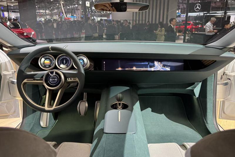 内饰方面,可以看到,新车配备了白色座椅和绿色氛围的内饰,营造出不多的豪华感。此外,新车拥有三个圆形的仪表和一个巨大的屏幕。此外,新车方向盘造型十分简洁优雅。