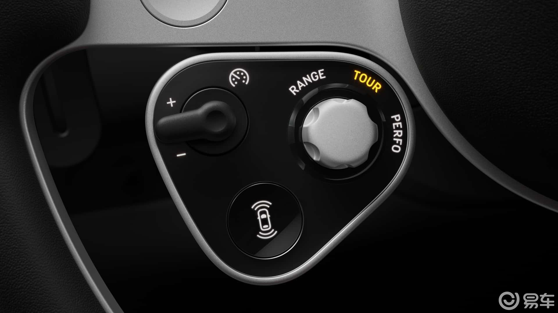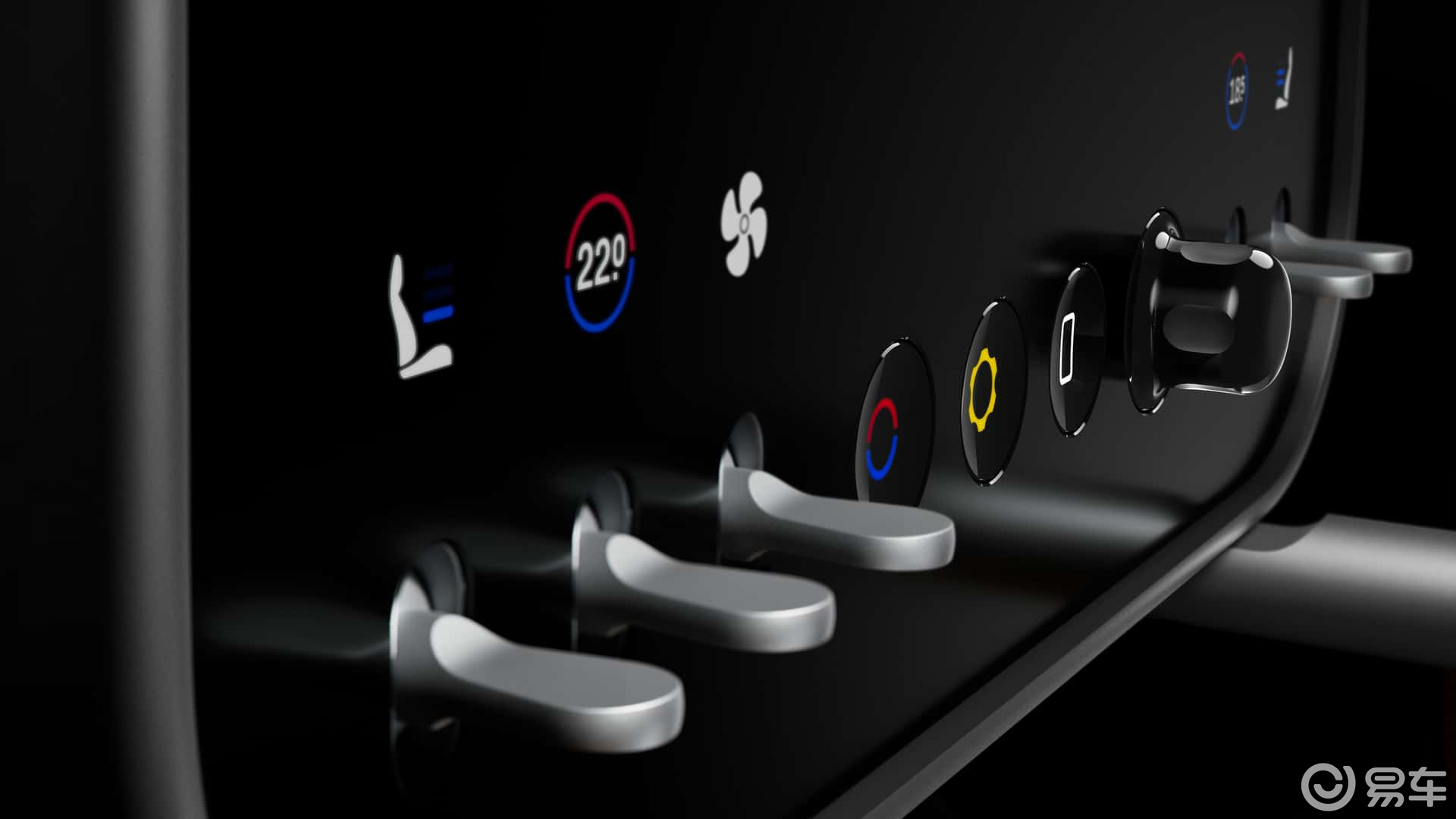整个座舱贯彻了极简主义理念。中央通道区域异常简洁,仅保留了车窗升降、门锁和行李厢开关等几颗必要的金属质感按键。屏幕布局上采用了三块屏幕独立分布,但驾驶员显示屏为独特的双层重叠设计,带镂空,灵感源自航空仪表盘;另有中控旋转屏和后排控制屏。中控屏带掌托且可旋转,并配有温控实体按键,在车钥匙上也是别具一格,采用了康宁 Fusion5 玻璃材质的钥匙,内置E-Ink电子墨水屏,启动时放入中控台支架后会变色,营造独特的启动仪式感。
