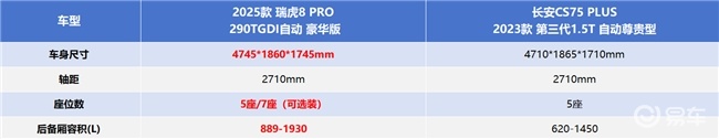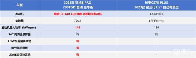相比之下,长安CS75 PLUS搭载的1.5T发动机最大功率为138kW,动力输出相较瑞虎8 PRO略显逊色。在智能安全配置方面,尽管配备了基础驾驶辅助系统,但缺少LDW车道偏离预警、LKA车道保持等关键功能,主动安全能力有所局限,同时未配备疲劳驾驶提醒等人性化配置,难以全面满足用户对高阶安全与贴心体验的需求。