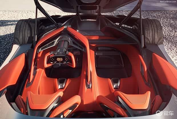 内饰部分同样充满科技感。当驾驶者接近时,座舱罩会自动向前开启。车内采用"地狱红"防弹面料包裹的赛车座椅,搭配铝合金和锻造碳纤维材质,营造出浓厚的运动氛围。最引人注目的是其数字风挡技术,将整个挡风玻璃变为全景显示屏,可实时显示各项性能数据。