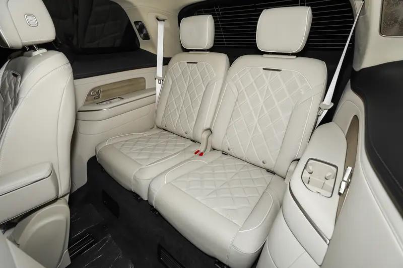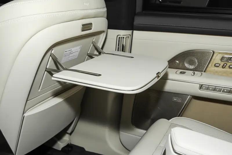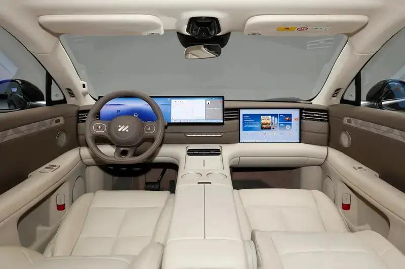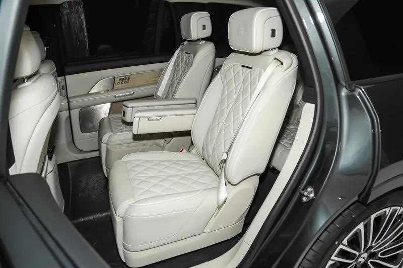 内饰方面,新车采用中正对称美学,领航屏设计,全新中控大屏、新增副驾娱乐屏、液晶仪表盘、两侧智能电子外后视镜屏,全新D型方向盘,操控更丝滑顺手。全车Nappa真皮包裹、全球臻选天然实木为原材料、搭配麂皮顶等,所见皆豪华,所触皆柔软,营造出豪华奢享的格调。