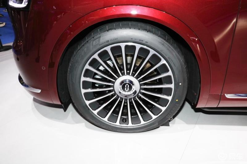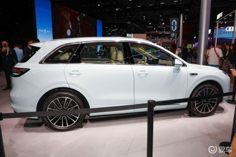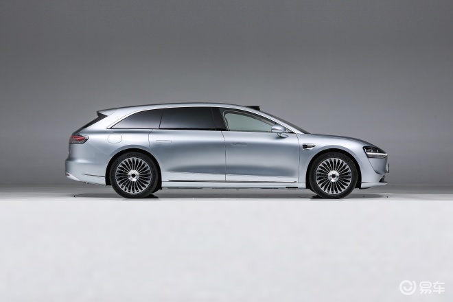 车身侧面,新车拥有长轴距的设计,并配备了宽大的C柱。新车在D柱上采用了全新的空气动力学风道,并配备了隐藏式门把手。此外,新车还配备了大尺寸的轮圈,米其林轮胎。