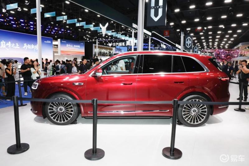 车身侧面,我们能够看到新车配备隐藏式门把手以及激光雷达,另外它还有着尺寸很大的后三角窗以及粗壮的D柱设计。轮毂方面,新车采用了豪华车常见的“大饼”轮圈,进一步凸显豪华感。