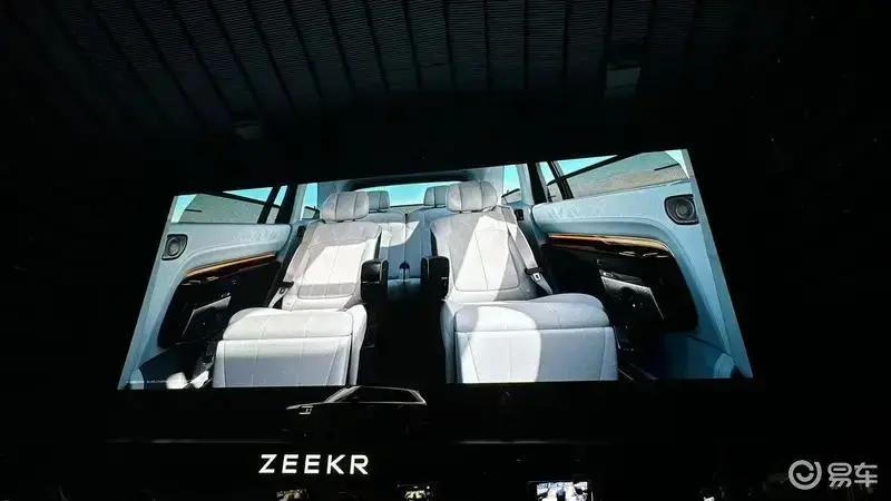 后排空间看上去极为宽敞,座椅看上去也非常舒适。此外我们还看到新车后排不但配备了中央扶手,而且还提供了娱乐屏。