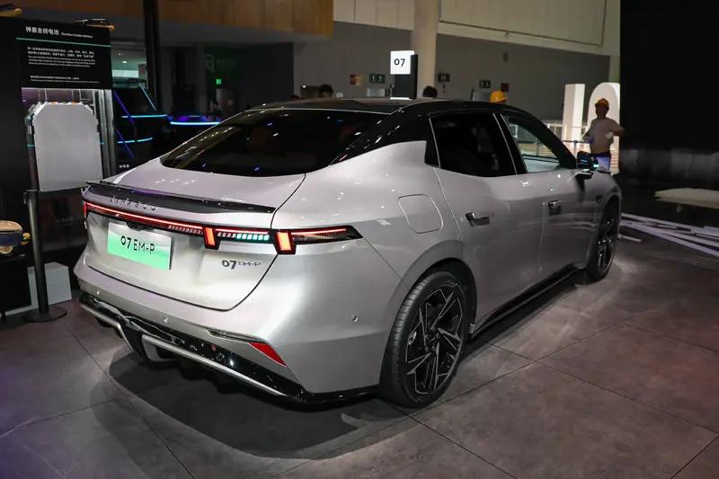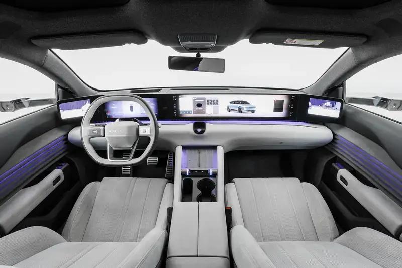 官方表示,新车基于原生纯电架构打造,拥有3米超长的轴距。车身尺寸方面,新车长宽高为4950*1935*1655/1670mm,轴距3000mm。此外,新车采用短前后悬和长轴距,拥有大曲率弧线贯穿车顶,兼顾运动与大空间。车尾方面,新车同样采用了家族式设计语言,配备有贯穿式灯带、后扰流板等,牌照架位于尾门中间位置。