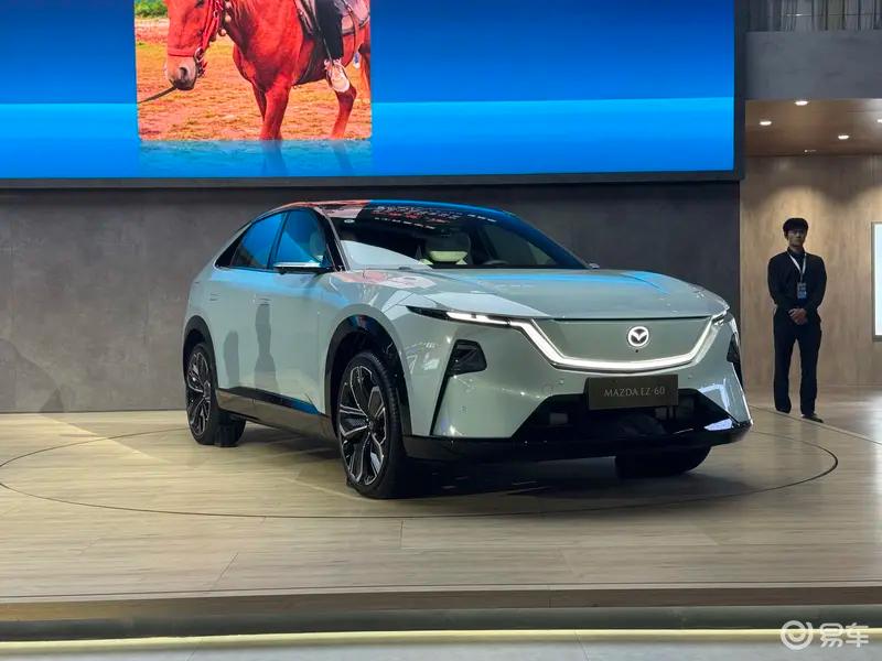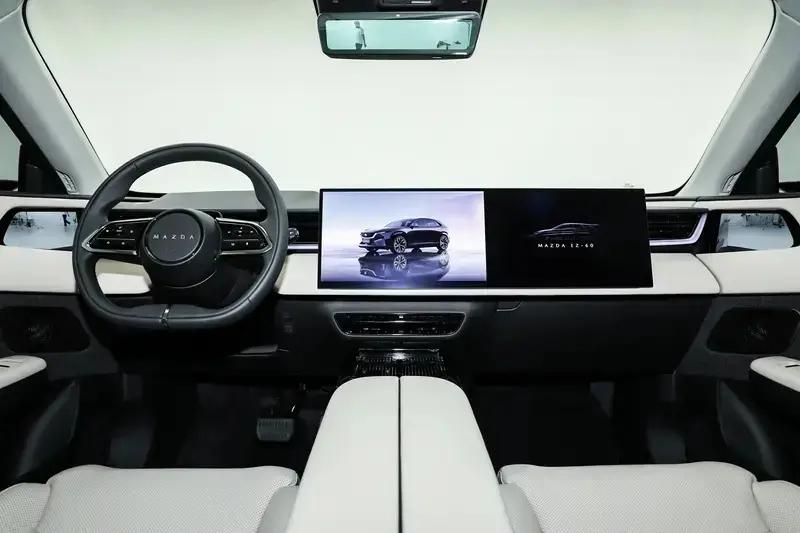 马自达EZ-60基于长安EPA平台打造,提供纯电和增程两种动力供选择,是马自达的第二款新能源车型。外观方面,新车延续了马自达“魂动”设计,并采用了全新的紫色系车漆。前脸采用了全新设计的中网,分体式大灯设计,棱角分明的日行灯贯穿式设计,极具未来感。前包围造型夸张,展现出运动氛围。