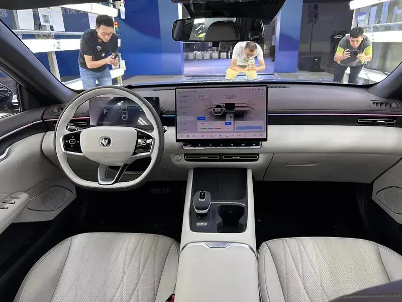 内饰方面,新车整体采用简约设计风格,但科技氛围却相当浓厚。新车中控台配备了26.45英寸大屏,此外还搭载了流媒体后视镜、100英寸AR-HUD以及后排控制屏。空间方面,新车后备厢容积350升,最大可扩充至2036升。动力方面,新车将提供纯电及增程两种动力供选择。结合此前的申报信息,增程动力车型将采用1.5T增程器,功率为72千瓦,驱动电机峰值功率为190千瓦。