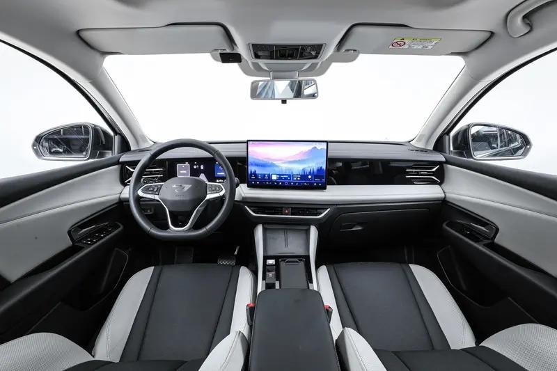 内饰方面,新车采用了经典的“T”字形布局,三辐式方向盘搭配大尺寸的液晶显示屏,看起来科技感十足。此外,新车还支持Carlink、CarPlay等功能。