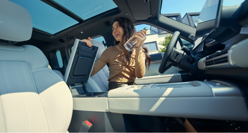 钛7不仅拥有“高庭阔院”,更有着包罗万象生活的魔法空间。钛7的后舱容积达到了近千升,将二排座椅放倒后,更是瞬间拥有一个1880L的“超级”大床房,能装下18个20寸行李箱加上5个22寸行李箱。除了有大空间、大容积,钛7还有47处储物的巧思,让每一位家庭成员的物品都能找到自己专属的收纳位置。