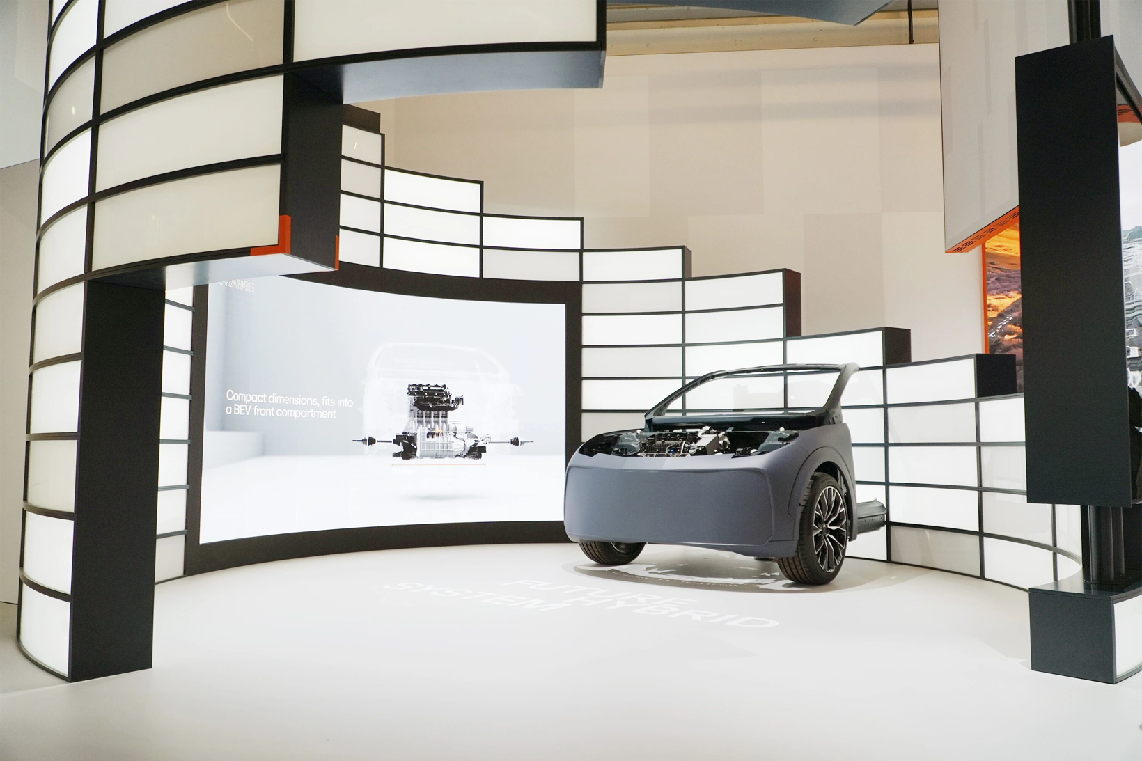 继今年4月上海车展首次展出未来超混动力概念车后,浩思动力在本次IAA车展迭代升级并推出未来超混动力系统。其中性能版(P1+P3电机布局)动力总成宽度为740mm;超紧凑版(P2电机布局)宽度仅650mm。浩思动力表示,此方案可帮助主机厂节省20%的研发与改造成本,并将在2027年实现量产上车。另外公司正同步研发三缸版本以满足更小型车辆应用。