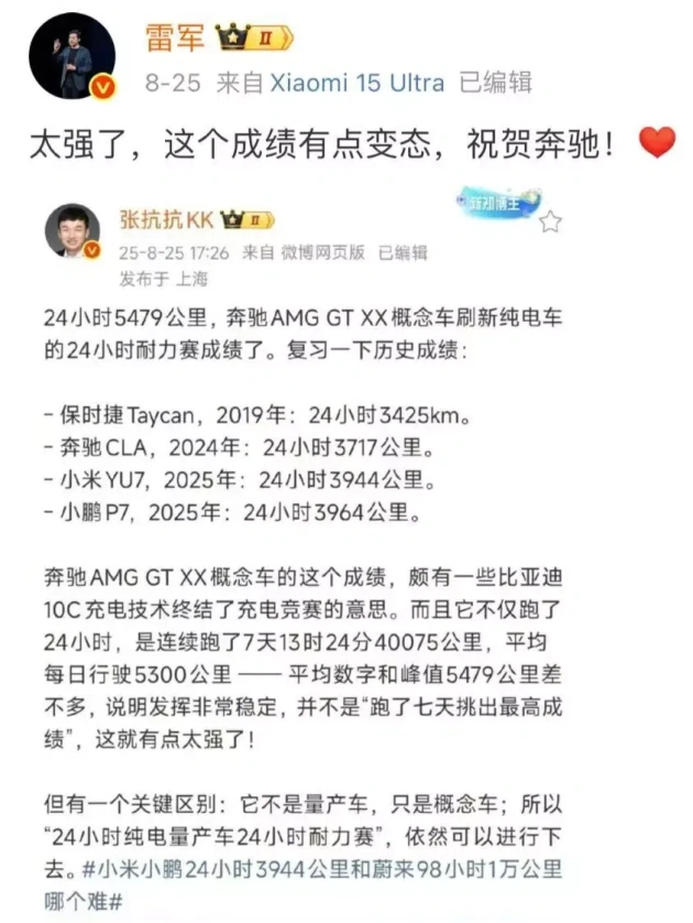 谁再说奔驰的新能源是杂牌,直接把雷军的微博链接发给他。