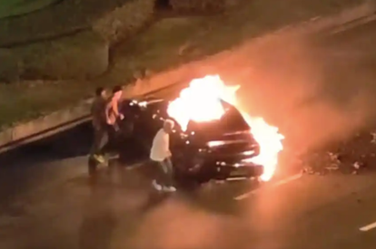 周围好心人第一时间冲上去救人,疯狂拍打车门,却怎么也打不开。 那一刻,火光映着他们绝望的脸——不是不想救,是门,真的打不开。