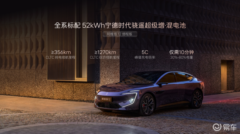 增程版全系标配52kWh大容量宁德时代骁遥超级增·混电池,CLTC纯电续航里程356km,轻松实现“一周一充”的城市纯电通勤自由。