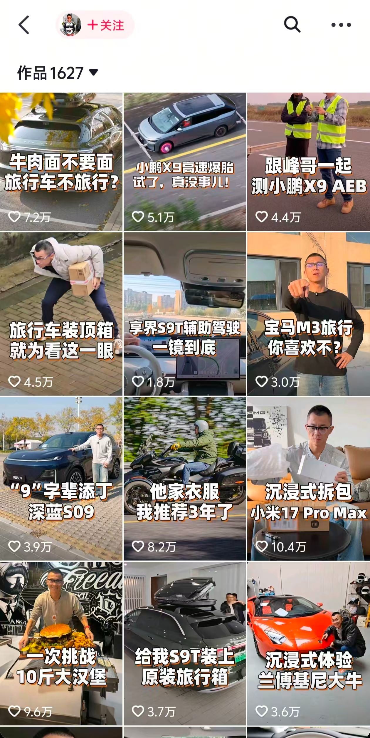 财闻注意到,近一个多月以来,陈震抖音平台发布视频超过30条,其中涉及多个商业品牌,疑似商单的包括享界的S9T测评,小鹏x9极端全场景爆胎测试,以及深蓝S09、宝马M3等,其中,享界的S9T测评超过4条,小鹏x9相关视频也有3条。