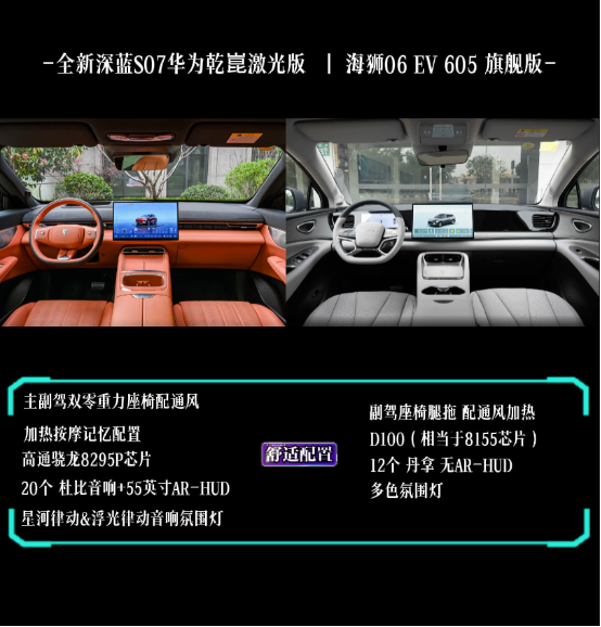 深蓝S07华为乾崑激光版与海狮06EV有何差异,怎么选?