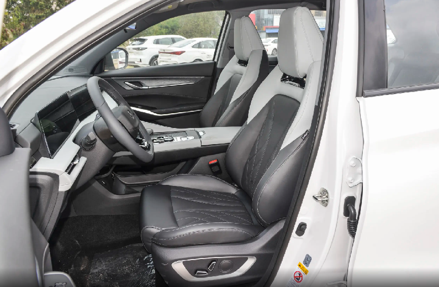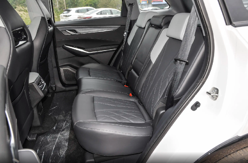 车内座椅采用软性材质包裹,前排座椅采用运动化设计,护翼宽大对身体包裹感良好,身高1米77的本人坐在前排,头部空间大概还有4指空隙,乘坐姿态舒适,且前向视野开阔。切换到后排乘坐,坐垫长度偏短,支撑性表现一般,但纵向腿部空间确实要比同级别很多SUV竞品宽敞,实测腿部空间可以达到2拳半以上,横向空间可以容纳三人乘坐,加之后排地台无凸起,家用代步或长途旅行,车内乘载4-5人都是比较舒适的。
