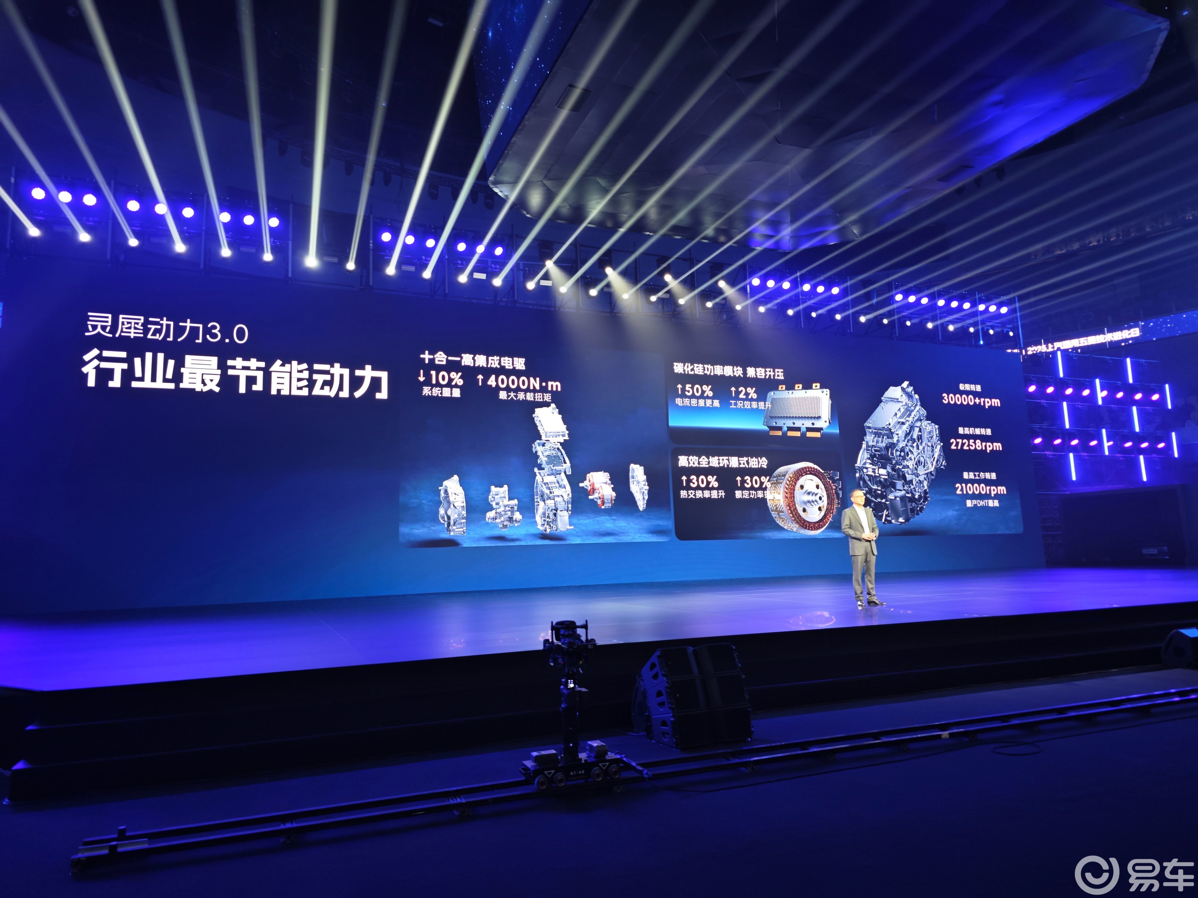发布会上也发布了灵犀动力3.0,其采用了十合一高集成电驱,系统重量降低了10%,还有着主动加热、脉冲加热技术,保证了冬季动力效能。灵犀动力3.0采用了新型硅钢片结构和转子轴中控设计,这为电机带来了更高的转速,最高工作转速达到了21000rpm,极限转速超过了30000rpm,性能强悍。