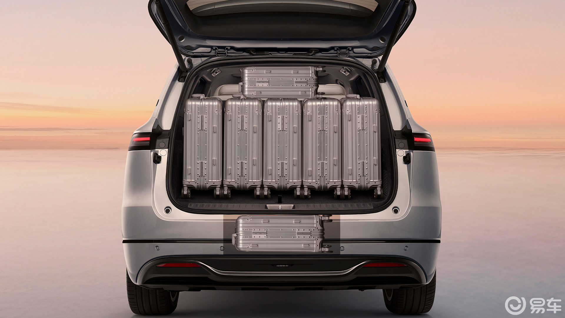 后备箱空间领克900就不那么实用了,常规状态是300L,放20寸行李箱比深蓝S09少了快一半,放倒后也只有1070L,最重要的是因为二排旋转座椅让它不能拥有2.5m露营大床。