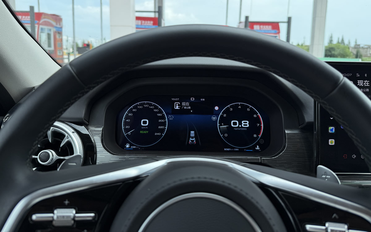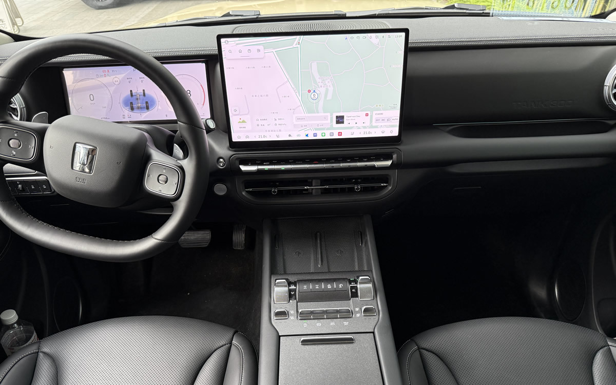 驾驶坦克400出停车场后就是车辆特别多的城区道路,得益于2.0T+9AT的黄金动力与48V轻混P0电机的加持,在走走停停的时候动力响应积极,换挡平顺且无顿挫。其最大功率达到185kW(252马力),峰值扭矩达到380牛•米,且WLTC综合油耗仅9.85L/100km。在高速公路上驾驶时,将车辆提速至120km/h很轻松,想要超车时深踩油门,发动机与变速箱能够及时得到响应,超车也不在话下。