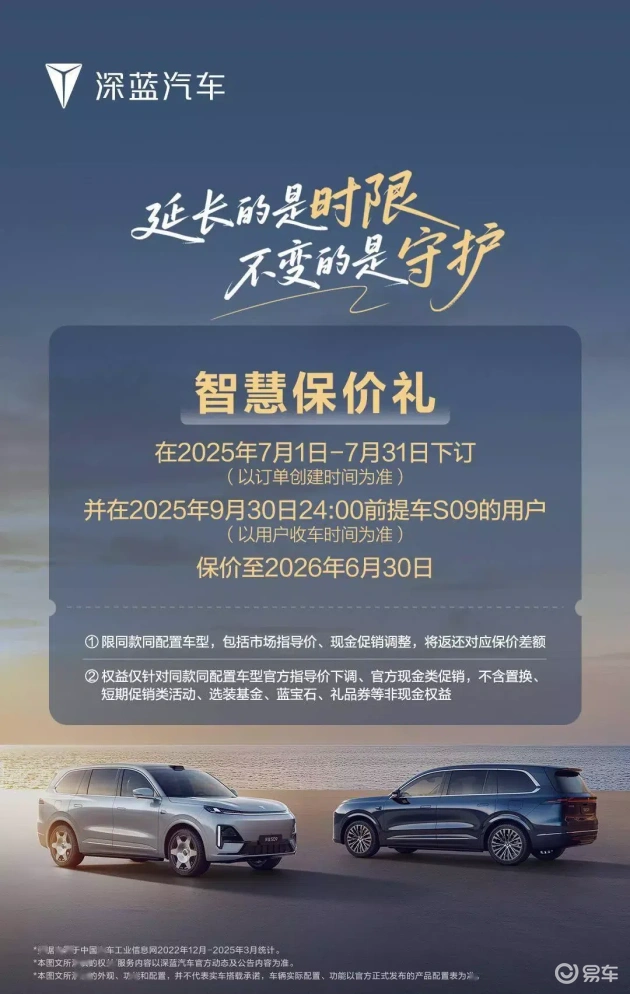 更值得一提的是,深蓝S09不仅在性能上表现出色,在诚意方面也毫不逊色。7月内完成车辆锁单的消费者,将享有最高价值104,599元的限时权益,其中包括5,999元抵15,999元的膨胀金和最高10,000元的智慧换置礼等,真正为消费者节省购车成本。此外,深蓝汽车还提供1年的保价权益,以实际行动消除消费者的后顾之忧。